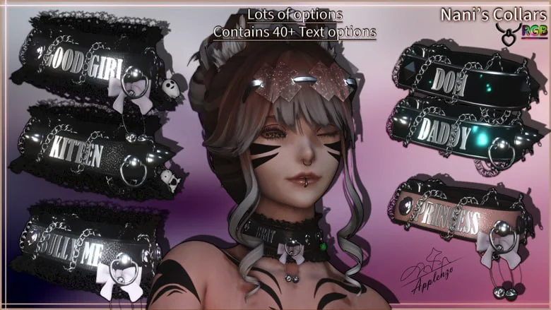 – Many toggable/interchangable Collars decorations : Spikes, Gems, chains, Bows, Charms, Diamond Spikes