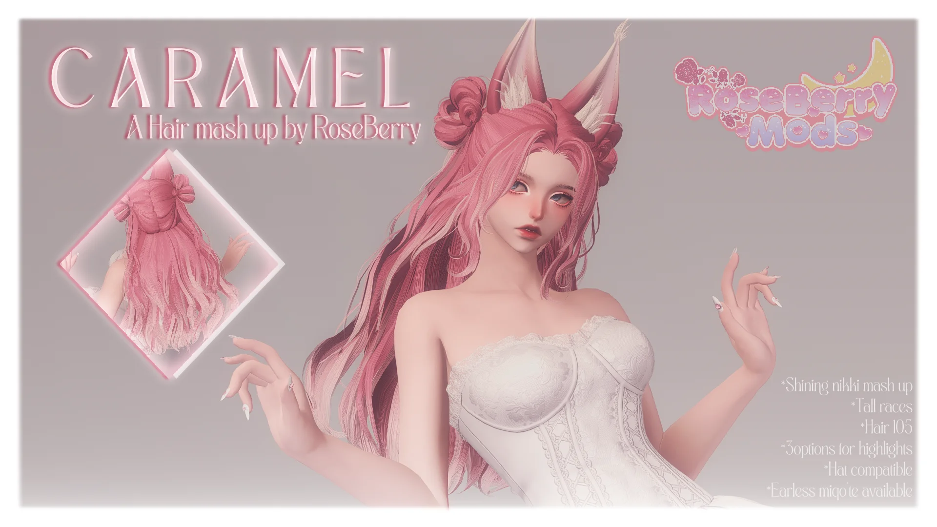 β’ Buns for miqo’te (vanilla ears) are in a different position to avoid clipping.