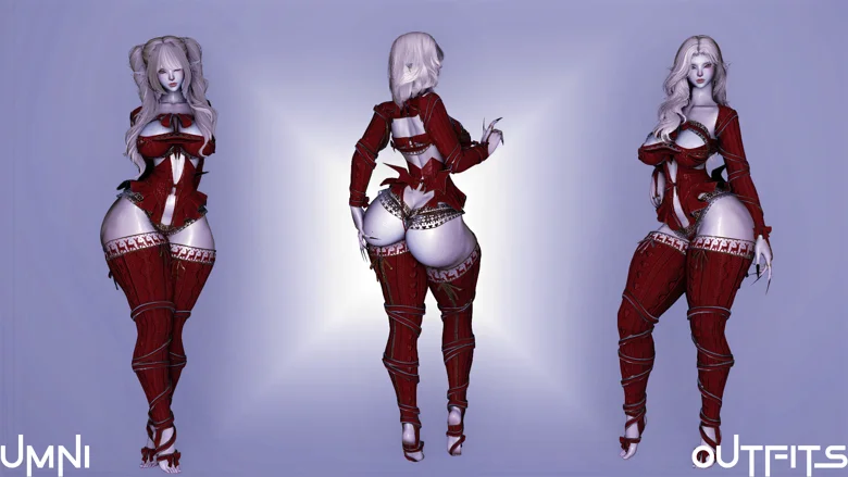The outfit comes with a wide range of toggleable pieces, including the top, chest drape, chest wrap, sleeves, sleeves ribbon and sleeves bow; panty, panty ribbon, corset, corset skirt, corset bow, thigh highs, thigh high bows, bat wings, bat wing bow and pubic hair; and a foot ribbon toggle. An option for flat foot or tippy toed foot ribbons is included. It also includes an alternate texture option to use after the holidays.