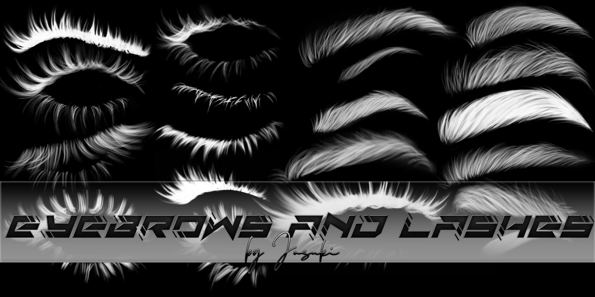 In this file are 20 different eyebrows and lashes as PNG.