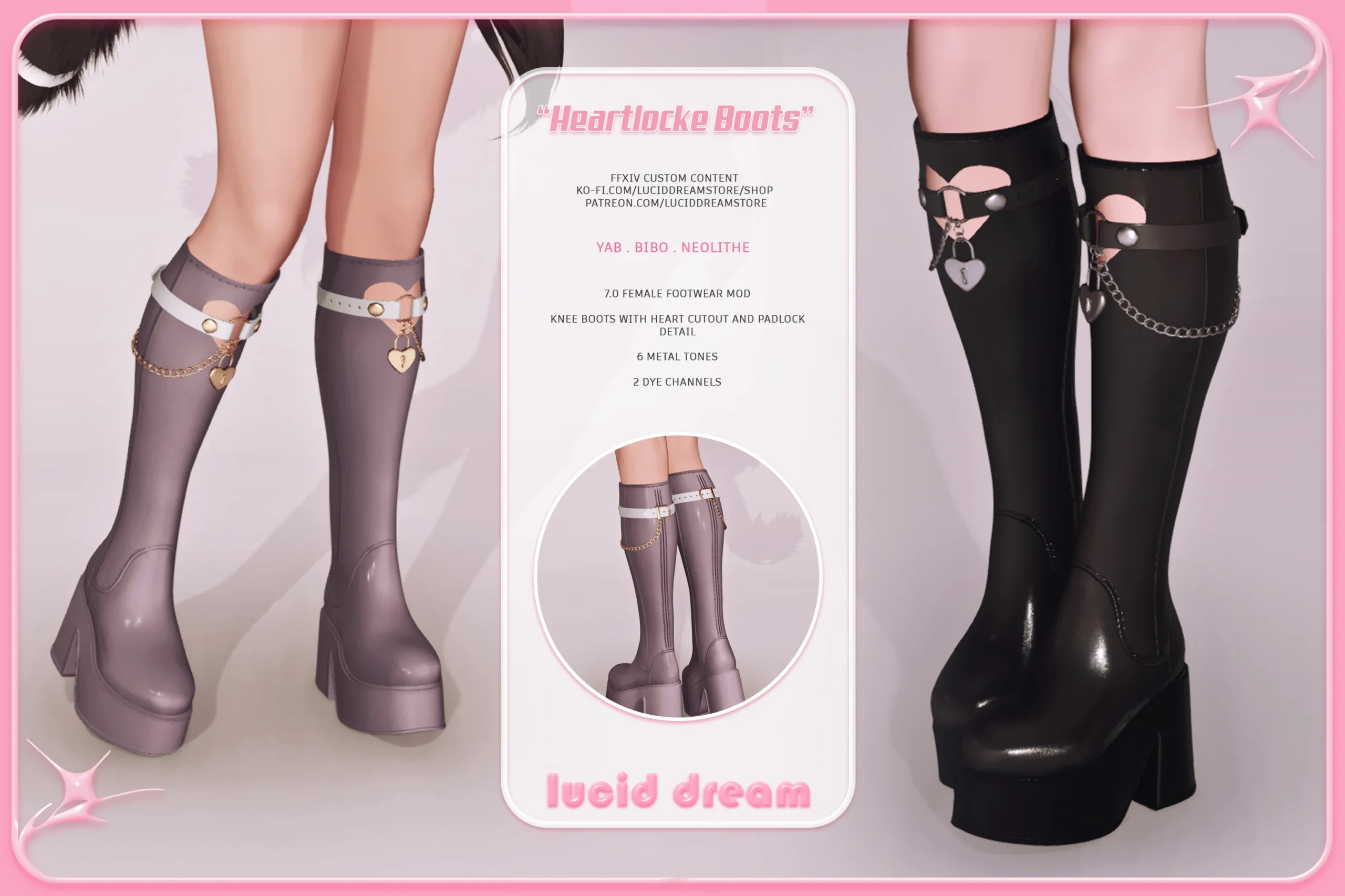 ⋆ Knee high boots with heart cut out, strap, chain and heart padlock detail.