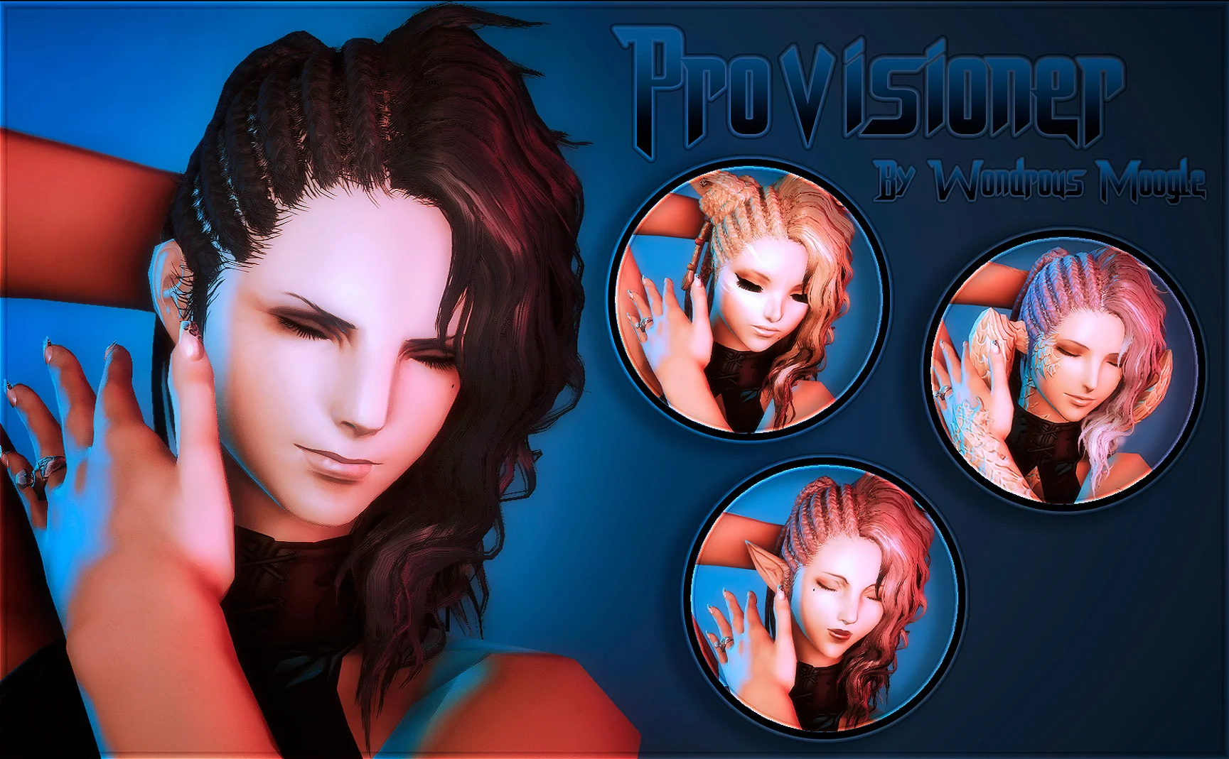 Fitted and sculpted individually to fit each race, with unique braids added to Viera and Miqote for vanilla ear support.