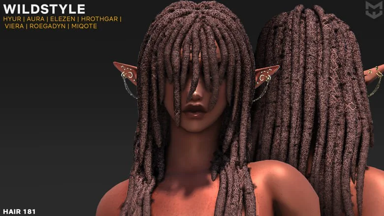 A wild hairstyle inspired by ‘Tia Dalma from Pirates of the Caribbean.’ Replaces hair 181 for all fem races (Lalafell Excluded)